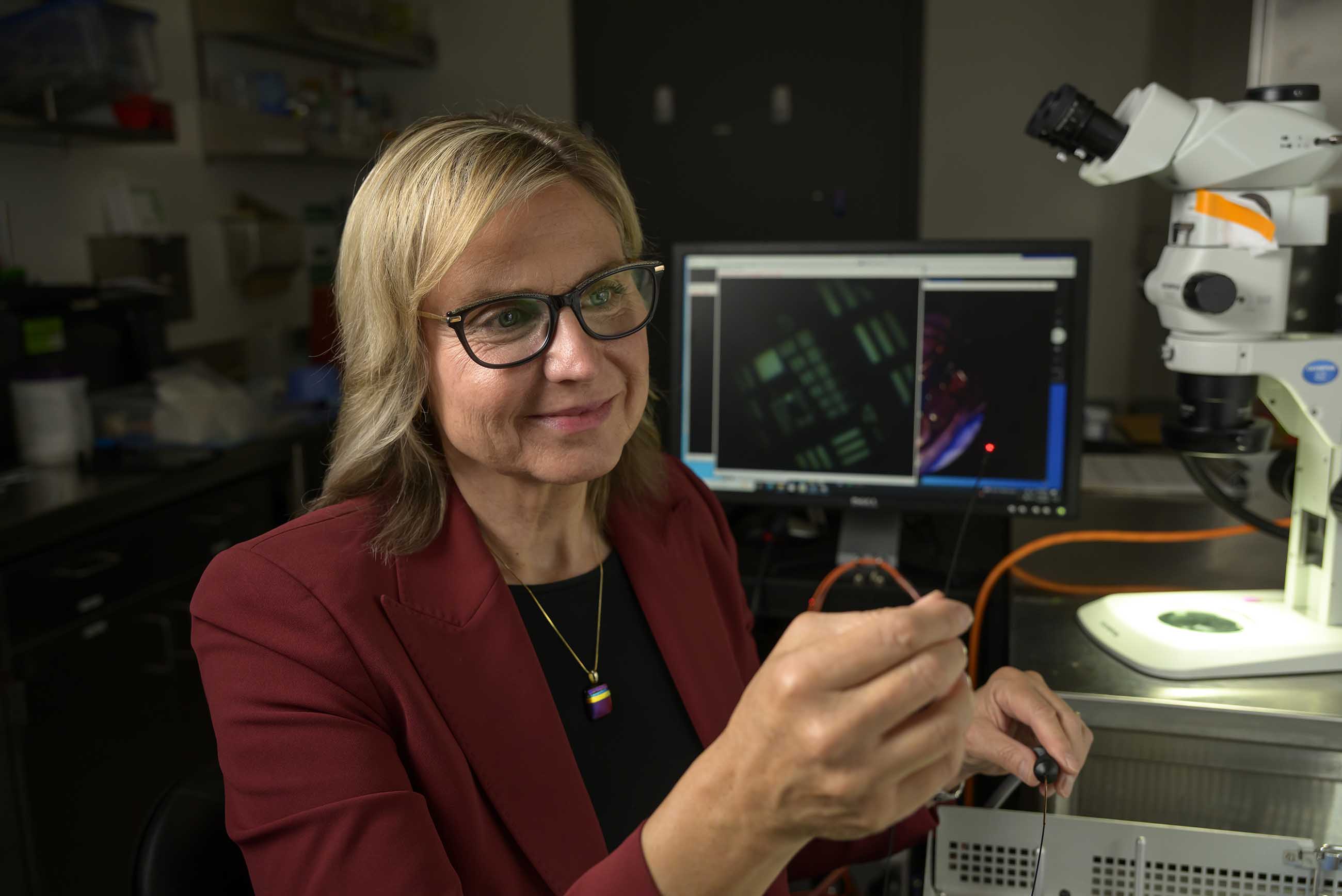 Jennifer Barton, PhD, has spent decades working to improve the timeline for detecting ovarian cancer. She and her collaborators are now conducting two pilot trials using optimized versions of her patented falloposcope – the first endoscope to image and collect cells from fallopian tubes.
